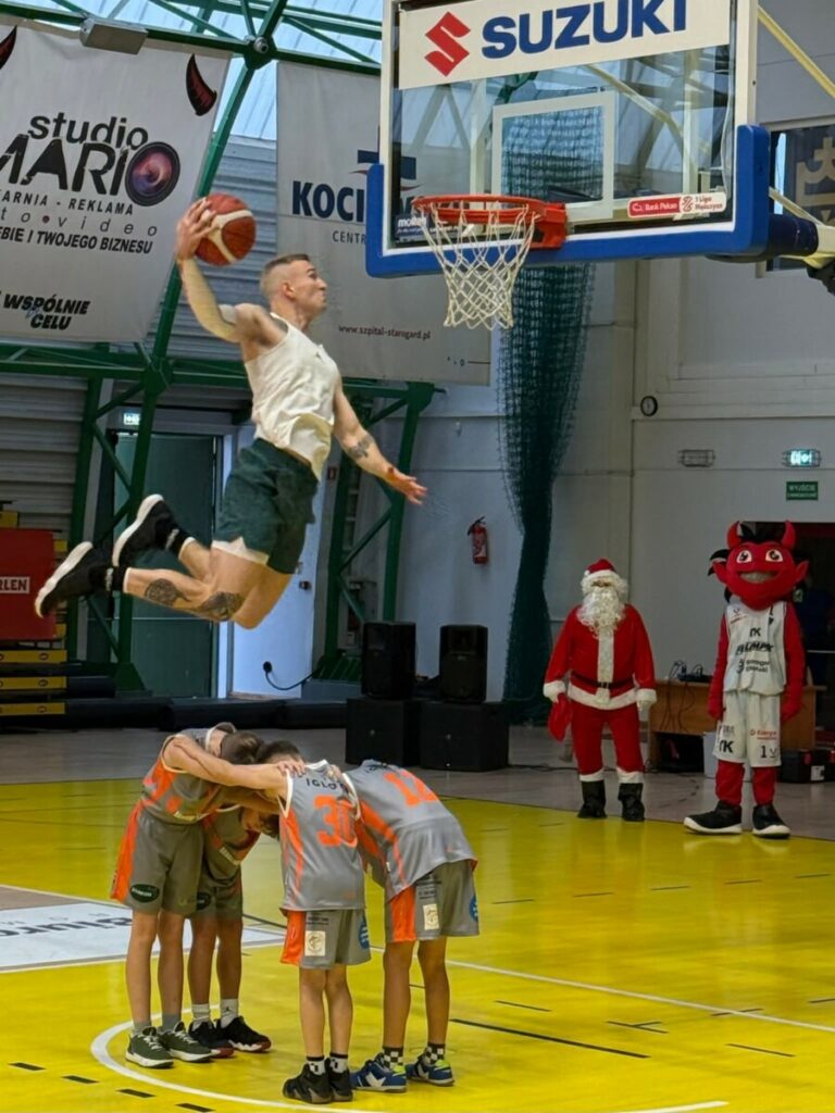 Podczas imprezy dzieci miały wyjątkową okazję zobaczyć pokaz efektownych wsadów w wykonaniu