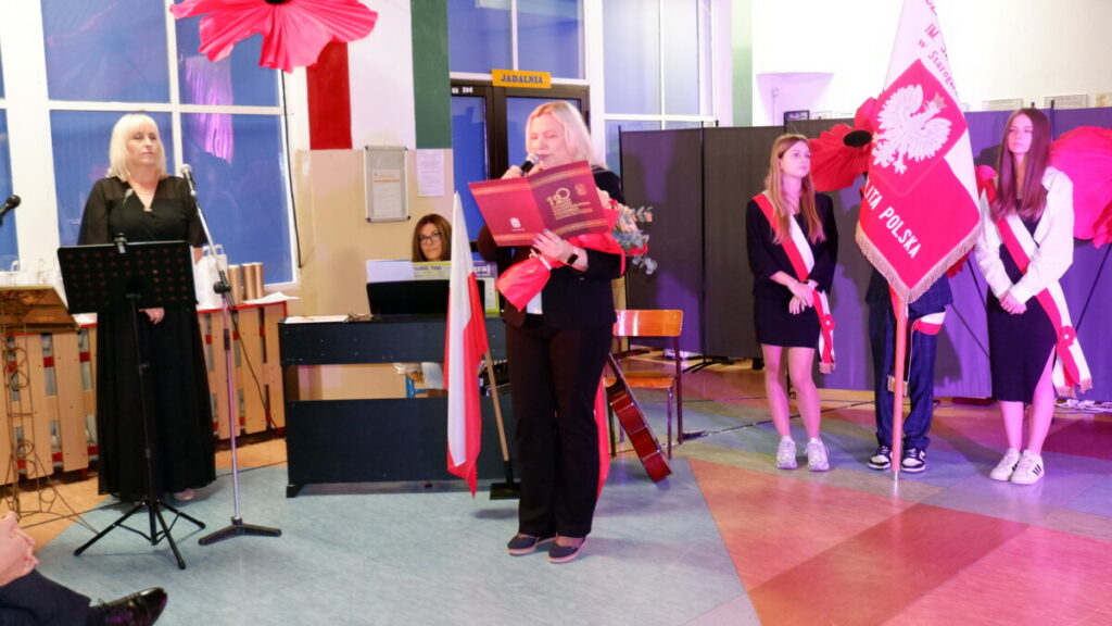 Oficjalna część uroczystości rozpoczęła się od wprowadzenia pocztu sztandarowego i odśpiewania hymnu państwowego. Następnie głos zabrał pan dyrektor, który w swoim przemówieniu podziękował władzom samorządowym, oświatowym, nauczycielom, Radzie Rodziców oraz wszystkim pracownikom, uczniom i rodzicom za współtworzenie historii „Szóstki”. Przypomniał początki szkoły, jej rozwój oraz liczne sukcesy wychowanków. Kolejnym punktem uroczystości było uhonorowanie siedmiu nauczycieli z miejskich szkół i przedszkoli  Nagrodami Prezydenta Miasta z okazji Dnia Edukacji Narodowej. Dyrektor Ryszard Hapoński przyznał nauczycielom i pracownikom naszej szkoły Nagrody Dyrektora.