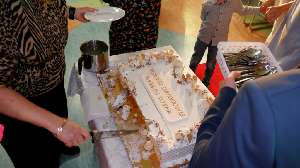 Kolejne przemówienia wygłosili zaproszeni goście. Wspominali oni z sentymentem swoje lata pracy w szkole, dzieląc się anegdotami i wspomnieniami z pierwszych lat działalności placówki. Nie zabrakło również ciepłych słów skierowanych do obecnych uczniów – przyszłości szkoły. Był to też moment życzeń i wręczania upominków.