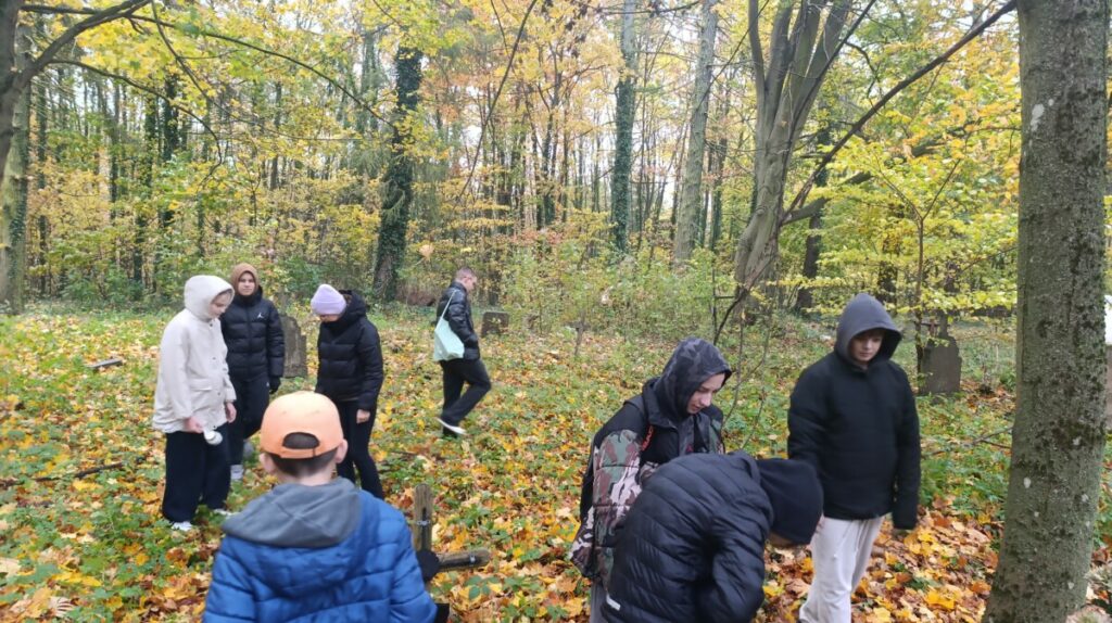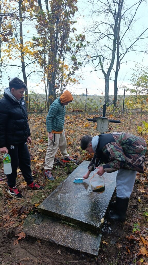 W tym roku klasa 7B porządkowała opuszczone groby, uczniowie zostawili również zapalone znicze.