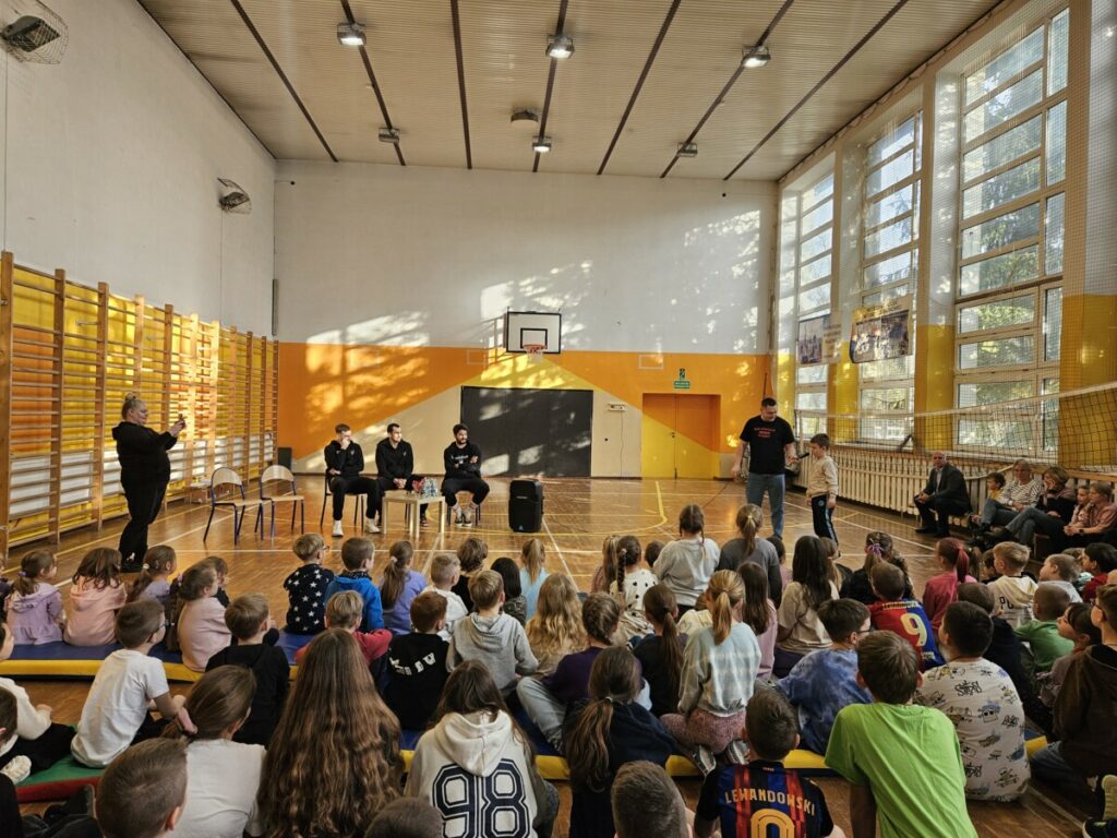 Sportowcy z dużą otwartością odpowiadali na pytania licznie zgromadzonych uczniów, rozdawali autografy, pozowali do pamiątkowych zdjęć oraz rozegrali mecz.